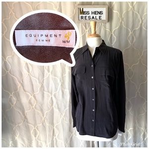 EQUIPMENT FEMME BLACK SILK BUTTON UP SHIRT, MD
