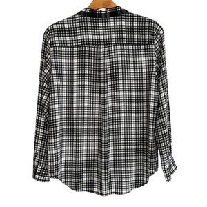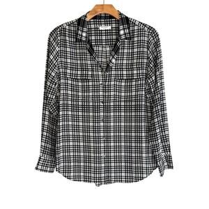 EQUIPMENT FEMME Silk black and white plaid button down shirt size large