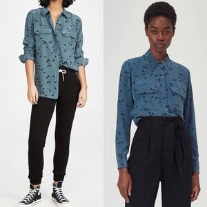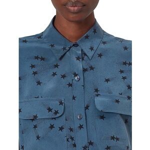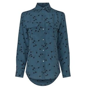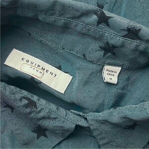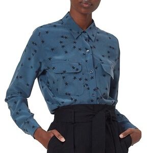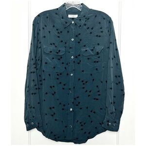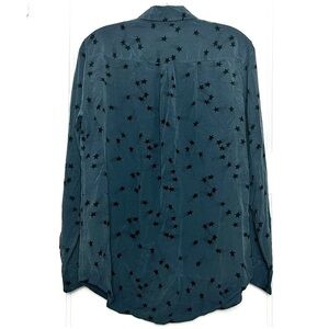 EQUIPMENT FEMME Teal Silk Star Print Long Sleeve Button Up Signature Blouse M
