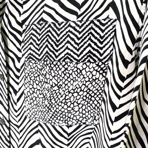 Print mixing concept using zebra and reptile textures in stark black and white.