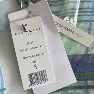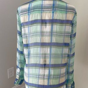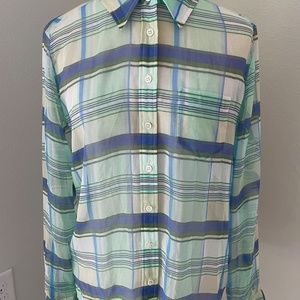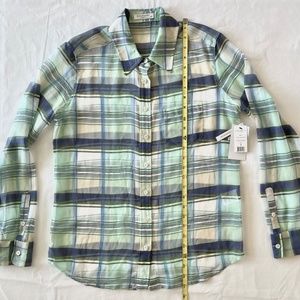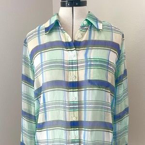 EQUIPMENT NWT WOMENS SP BUTTON-DOWN LONG SLEEVE SHEER TOP BLUE GREEN PLAID SILK