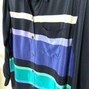 EQUIPMENT Oversized Colorblock Stripe Silk Shirt