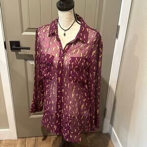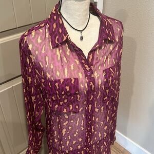 Equipment Femme Silk Button-Up Top, size Medium. Animal Print, Long Sleeve with Collar, Button Closure at Front. EUC.