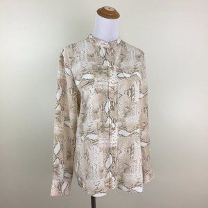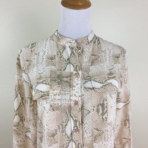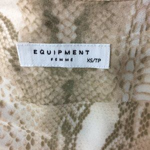 EQUIPMENT White Cream Beige Taupe Python/Animal Print Logo Button Shirt