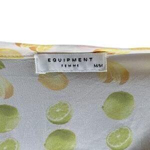 EQUIPMENT White Fruit Lemon Lime Patterned Silk Blouse Women's Size Medium