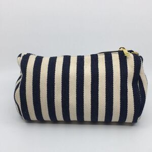 Equipt 4 U canvas large cosmetics bag or clutch. Perfect size! There’s a D-Ring, so you could add a wristlet strap to this. Minor tarnishing to hardware. Such a fun stats print inside! And one interior zippered pocket. In excellent used condition.