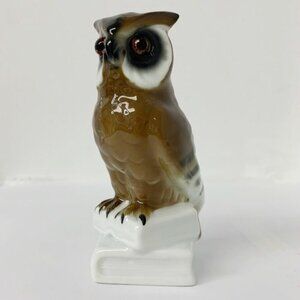E&R Golden Crown Owl with Orange Eyes on books - Western Germany