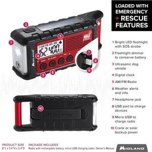 ER310, Emergency Crank Weather AM/FM Radio - Multiple Power Sources, SOS Light