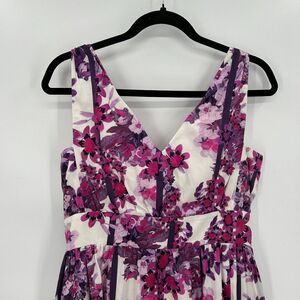 ERDEM Purple Pink White Floral Cotton Silk V-Neck Sleeveless Spring Mini Dress 8