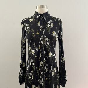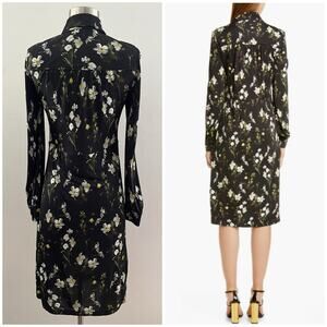 ERDEM Tullio Daffodil Floral Shirt Dress Women's 2 Black Long Sleeve Modest
