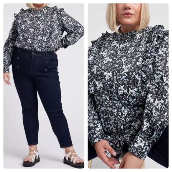 ERDEM x UNIVERSAL STANDARD Kalina Ruffle Shirt Chambray Bud Floral