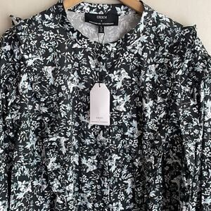 Erdem x Universal Standard The Kalina Long Sleeve Ruffle Shirt is made from a cotton sateen that gives off a lustrous finish and is cool to the touch. Designed to be a full button down with long sleeves that have slight-volume at the forearm down to the cuff with button closure. Patterned with beautifully bold florals that can be dressed up or down.