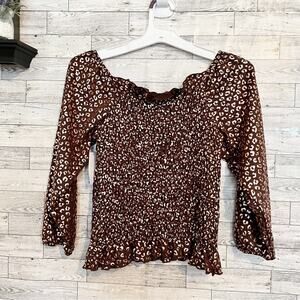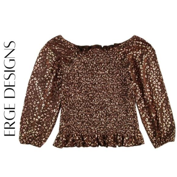 ERGE Designs Girls’ Smocked Foil Leopard Top, L, NWT!