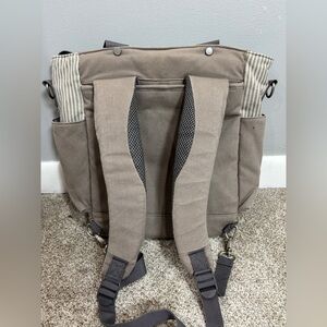 ERGOBABY The Coffee Run Tote Backpack Baby Diaper Bag Grey Unisex. Very good preowned condition! No rips, holes, or stains. Inside is in very good condition! Can be worn as a backpack or held with handles on top.