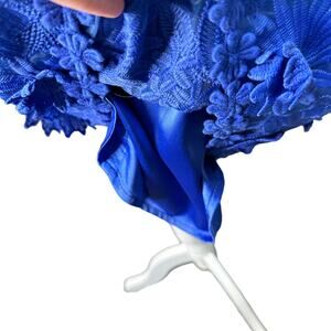 ERI + ALI Womens Small Royal Blue Lined Sleeveless Embroidered Daisy Lace Shift Dress in Excellent preowned condition, no flaws found.