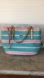 Eric Javits Straw and Leather Tote in Turquoise Pink Striped