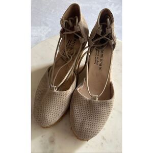 Experience effortless style with Eric Michael's best. Featuring a soft leather upper and a cushioned footbed, the Sam ensures all-day comfort without sacrificing style. The jute-wrapped wedge and midsole add a timeless touch, while the lace-up ankle enclosure guarantees a secure, adjustable fit.