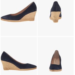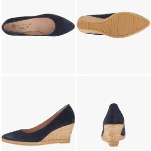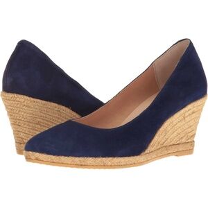 ERIC MICHAEL TEVA WOMEN'S Navy Blue Suede Wedge Pumps Pointed Almond Toe Leather Dress Shoes