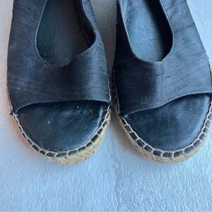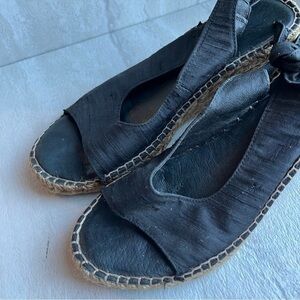 ERIC MICHAEL black Suede Espadrille Wedge Sandals 37 tie back