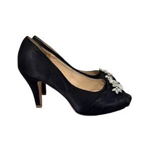 ERIJUNOR Black Satin Rhinestone Peep Toe Heels Bridesmaid Pumps Womens 8