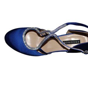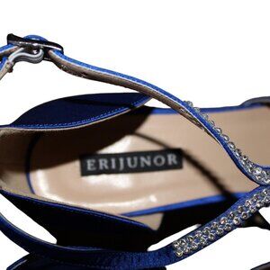ERIJUNOR Comfort Low Heel Closed-Toe Ankle Strap Blue Satin Rhinestones 8, NIB