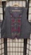 Chic gray vest adorned with vibrant FLORAL embroidery in red and green. A unique addition to any wardrobe. WOOL EMBROIDERED FRONT, NORDIC DESIGN, COTTON BACK AND LINING, SASH TIE IN BACK, SIZE AND FABRIC TAG MISSING, PRE OWNED IN BEAUTIFUL CONDITION: