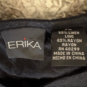 ERIKA Black Linen & Rayon Casual Button Down XL