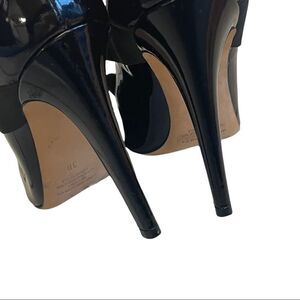 ERIKA CAVALLINI Italy Black Patent Leather Pointy Toe Heels Pumps Cross Strap 38