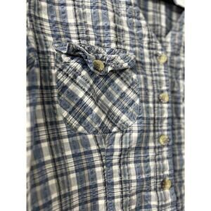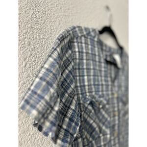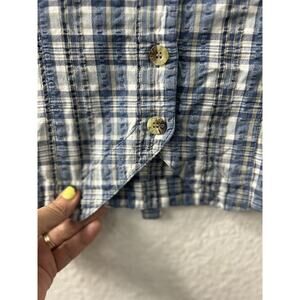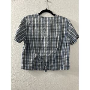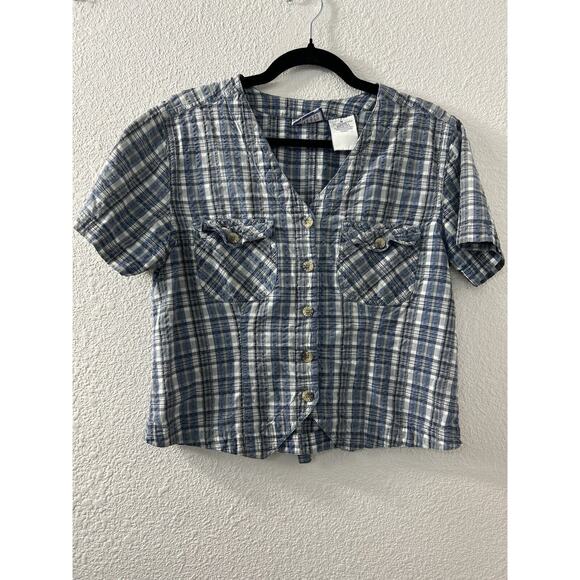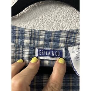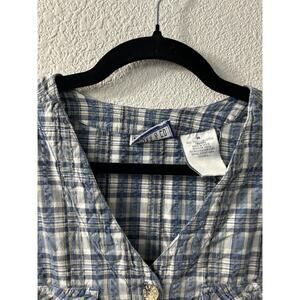 ERIKA & Co Plus Size Medium Short Sleeve Button Blouse Blue/White Plaid Check