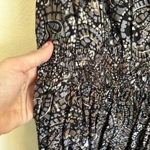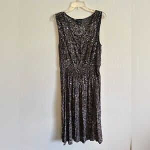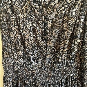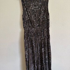 Beautiful sleeveless midi length dress black brown and white perfect for spring/summer 100% rayon. Thanks for looking happy shopping.