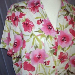 ERIKA PLUS FLORAL HAWAIIAN TROPICAL FUN PARTY PINK CUTE PLANTS CASUAL BUTTON UP
