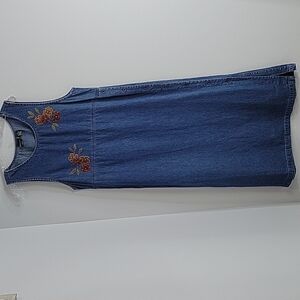 ERIKA Sleeveless Denim Jean Maxi Dress Fall leaves embroidered beads Size Medium