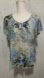 ERIKA Top Blouse Blue Floral Size Medium Short Sleeve Sparkle Contrasting Print