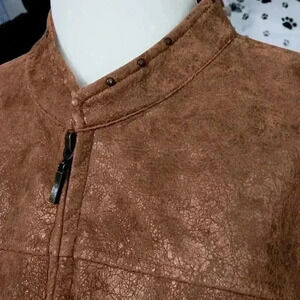 Excellent used condition. Brown faux leather jacket. Inside is lined with a animal print. Full front zipper.