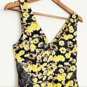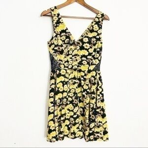 Chic sleeveless dress with a vibrant floral pattern. Features a flattering V-neckline and fitted waist. Perfect for any occasion.
