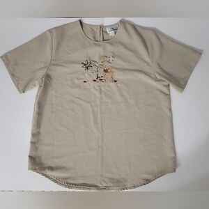 ERINLONDON Safari Scene Embroidered Vintage Khaki Short Sleeve Shirt