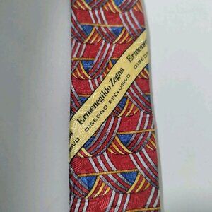 ERMENEGILDO ZEGNA MENS GEOMETRIC PATTERN 100% SILK NECKTIE 4x58"