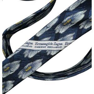 ERMENEGILDO ZEGNA Men's 100% Silk Necktie LUXURY Tie Blue Floral W:3.8" EUC