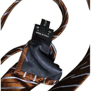 ERMENEGILDO ZEGNA Men's 100% Silk Necktie LUXURY Tie Brown Striped W:3.2" EUC