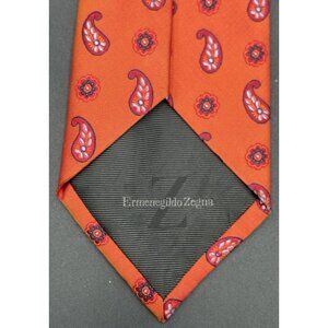 ERMENEGILDO ZEGNA Men's Tie 100% Silk ITALY Luxury FLORAL Red Orange Blue 62"EUC