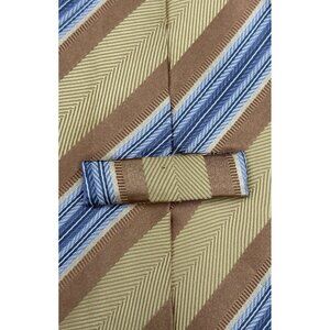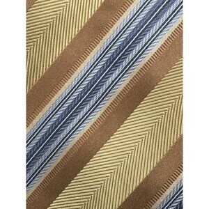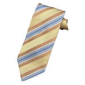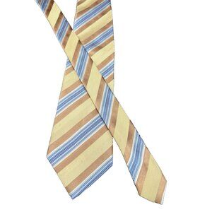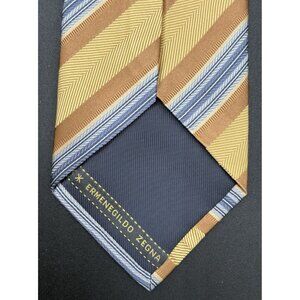 ERMENEGILDO ZEGNA Men's Tie 100% Silk ITALY Luxury Striped Gold Yellow Blue 61"