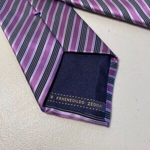 ERMENEGILDO ZEGNA Purple, Black and Silver Striped Tie 100% Silk Made In Italy