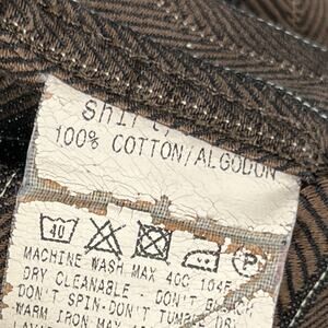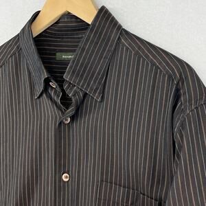 ERMENEGILDO ZEGNA Shirt Mens XL Striped Herringbone Twill Button Up Cotton Brown