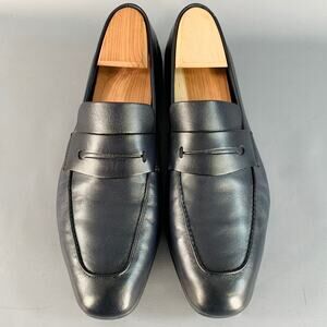 ERMENEGILDO ZEGNA Size 9 L'Asola Black Lambskin Leather Penny Loafers