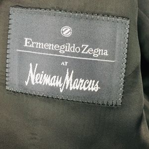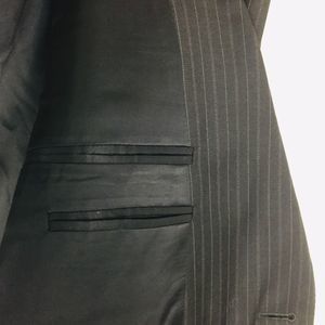 ERMENEGILDO ZEGNA TROFEO Men's Blazer Elevate your wardrobe with this stylish Ermenegildo Zegna black pin striped sport coat blazer. Made with a luxurious 100% Australian wool, this blazer is both comfortable and sophisticated. The flat front, two-button jacket front button style, and four-button sleeve button style add a touch of elegance. This blazer is perfect for casual and business occasions, making it a versatile addition to your wardrobe.