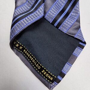 ERMENEGILDO ZEGNA- Textured Diagonal Repetitive Stripes -Blue /Gray