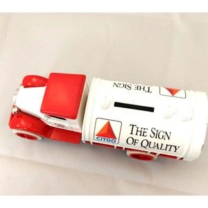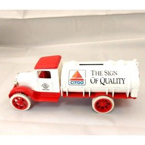 This ERTL CITGO 1931 Hawkeye tanker bank is a great addition to any diecast vehicle collection. This 1:34 scale model is made of high-quality diecast material and comes brand new in the original box, making it a perfect collectible for both boys and girls ages 17 years and up. The model features a white and red color with the Citgo logo and is labeled as the second in the series. Has a number 3441 in the box ns in the bottom of the truck.