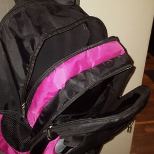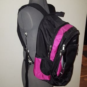 Very spacious and attractive backpack with several zippered compartments. Use as a travel, book or diaper bag. Side net pockets. Like new used twice.