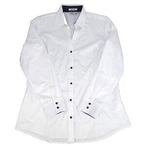ESABEL. C white easy care button up fitted blouse woman's size M NEW, NO TAGS
