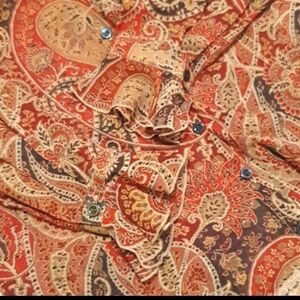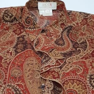 ESCADA 100% Silk Squash Orange Paisley Button Down Shirt